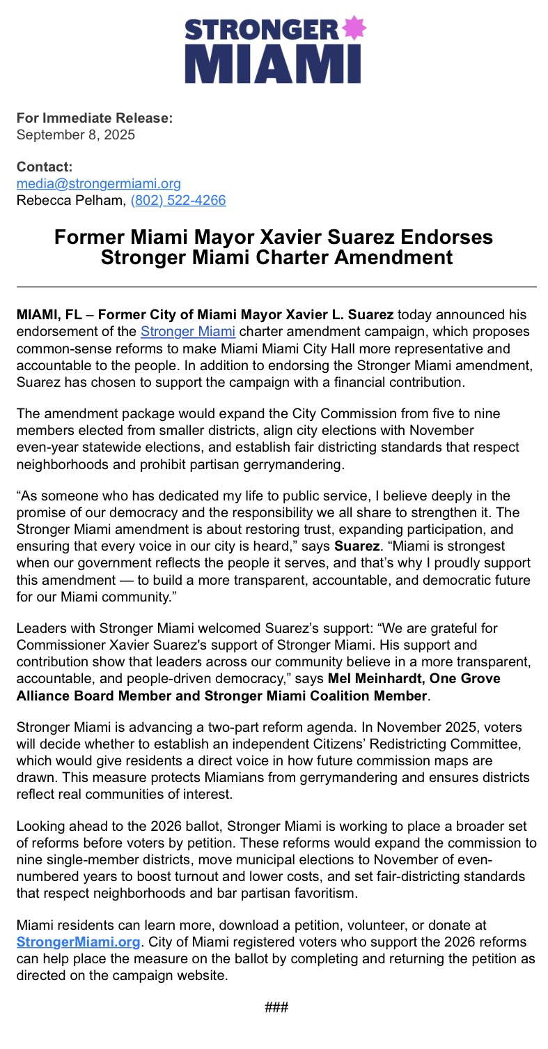 Click here to watchStay updated with the latest news and updates from Xavier Suarez's mayoral campaign.